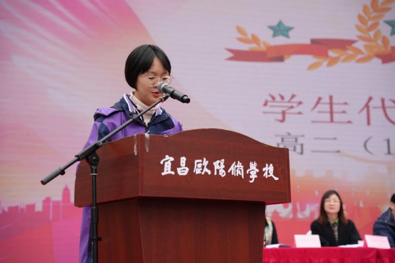 最后,高一(1)班學生陳棟升帶領全體學生莊嚴宣誓,鏗鏘誓言回蕩校園,展現出歐校學子奮發向上、勇攀高峰的精神風貌。